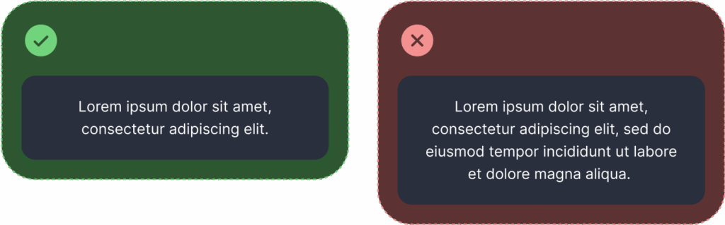 Ha a szöveg több mint két sorba törne, mindenképp olyan elrendezést válassz, ahol balra igazítva is megfelelően működik.